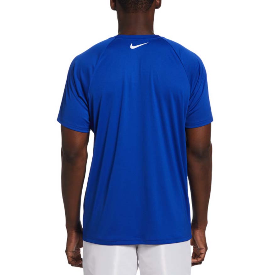 Great for swimming outdoors, catching some waves and any other aquatic sports, this short sleeve hydroguard by Nike offers UPF 40+ protection to help guard against damaging UV rays. Interlock fabrication adds natural stretch to keep you comfortable all day long. Dri-FIT Technology helps keep you dry by wicking moisture from your skin. This swim shirt goes the extra mile to help prevent chafing around the neck with an internal neck tape. Plus. it’s made with 75% recycled material for a choice you can feel about.