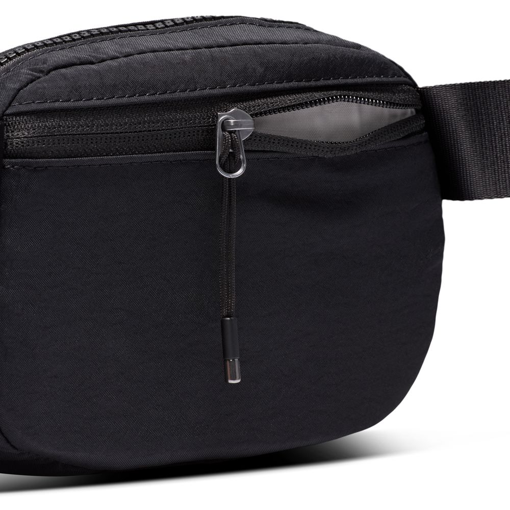 Keep your essentials close and your style game on point. A 2-liter volume capacity makes this bag ideal for carrying your keys, cards and phone. A rear zippered pocket provides quick access to small items while interior slip pockets make organization easy. An aluminum Swoosh logo adds a splash of sophisticated flair while an adjustable strap gives you multiple styling options.